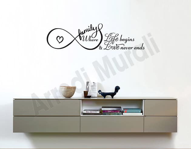 In conclusione, dovrai solo individuare la parete che più ti appare anonima, così da poterla ravvivare con i tuoi adesivi da parete frase famiglia decorazioni arredo.