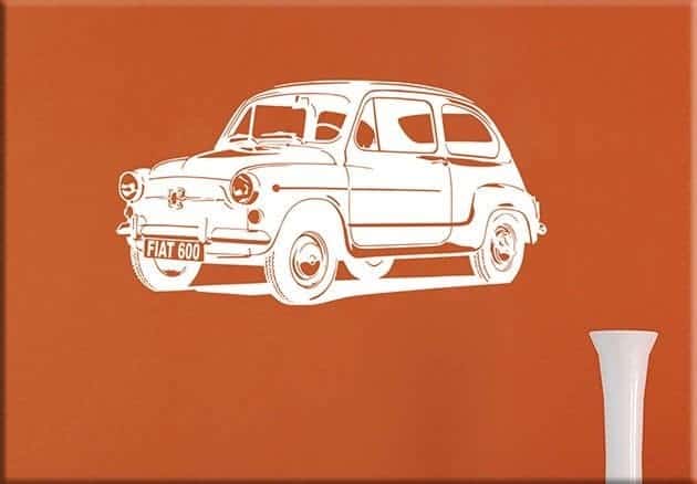 Caratteristiche principali degli adesivi murali auto Fiat 600 arredo