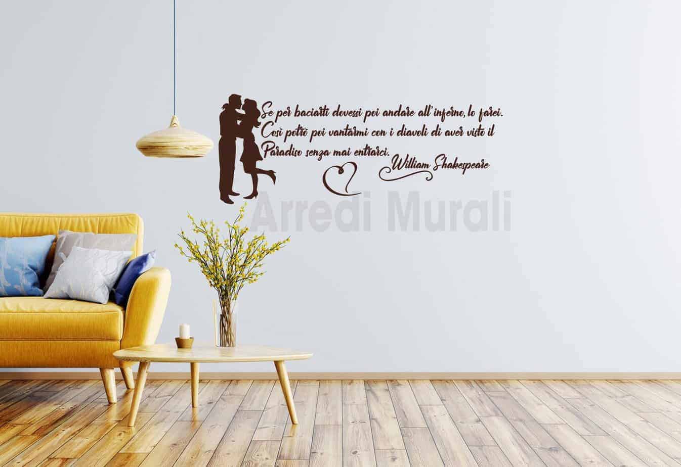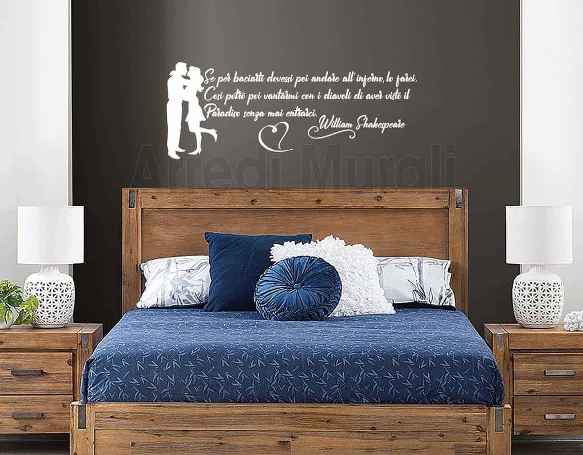 Adesivi murali kissing con una coppia di innamorati ed una bellissima frase di William Shakespeare: