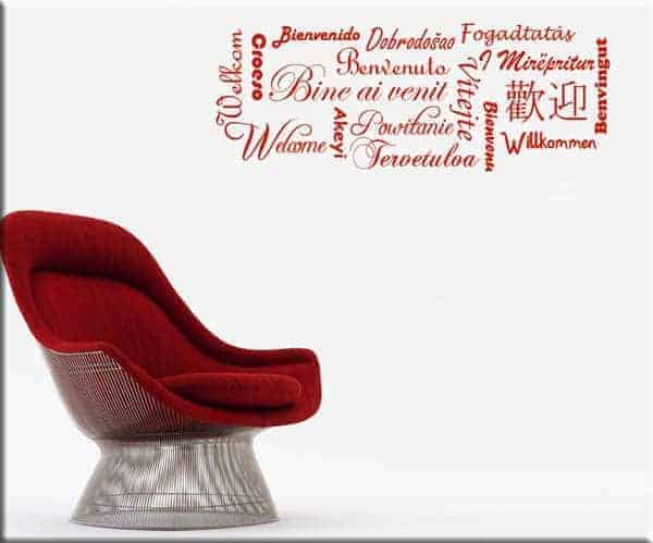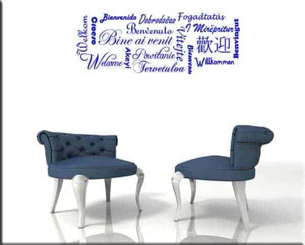 Adesivi murali benvenuto welcome sono decorazioni da parete moderne che danno il benvenuto in tutte le lingue del mondo.