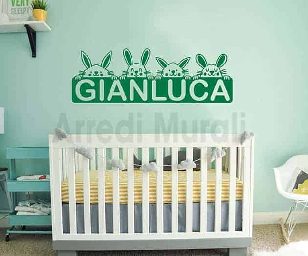 Concludendo, non ti resta che individuare la parete della stanzetta che più ti appare spenta così da poterla arricchire con i tuoi adesivi murali per le camerette dei bambini con nome personalizzato.