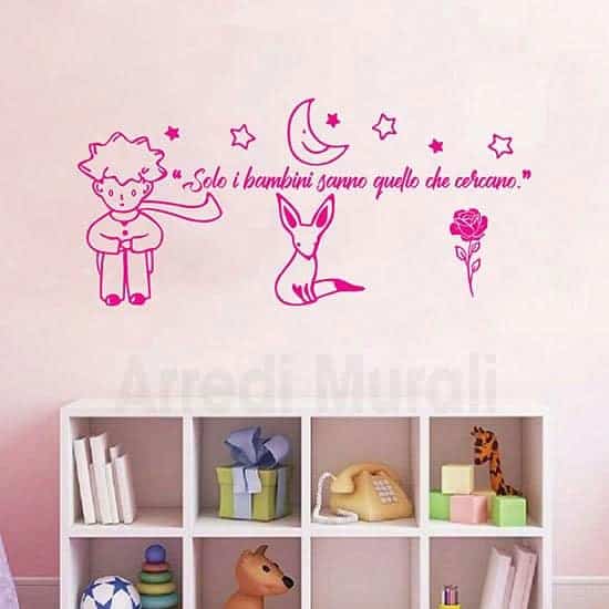 Per concludere, non ti resta che individuare la parete che più ti appare spenta così potrai decorarla facilmente applicando i tuoi adesivi murali citazione Piccolo Principe.