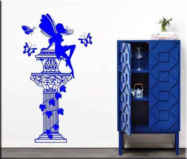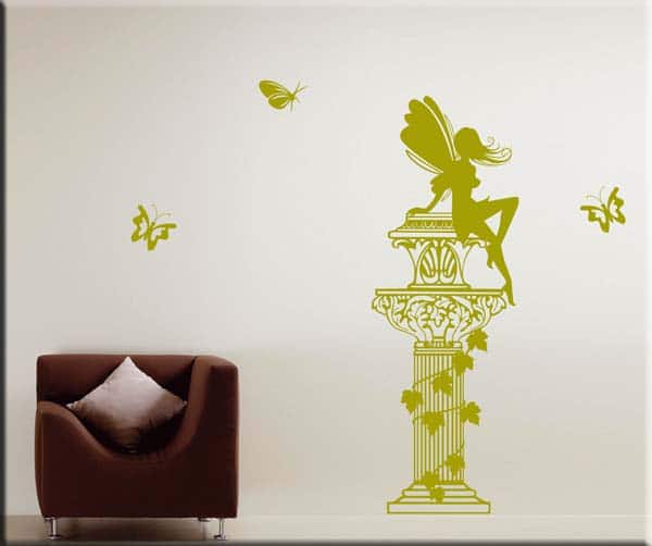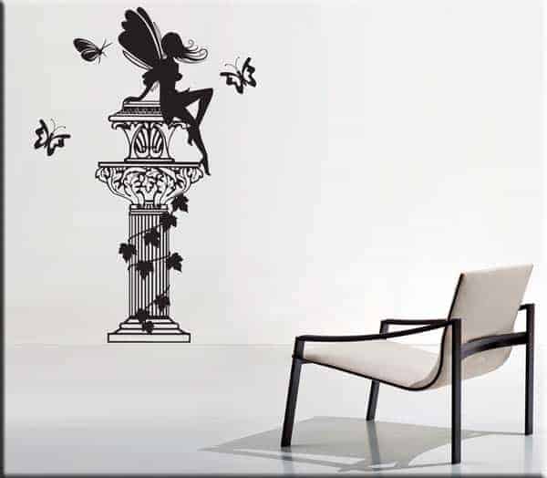 ADESIVO DA PARETE RAFFIGURANTE UNA COLONNA ARRICCHITA DA UNA FATA E TRE FARFALLE