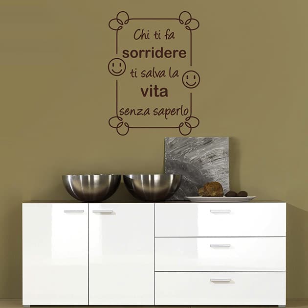 Adesivi murali frase arredo sorridere sono decorazioni da parete che compongono la simpatica frase: