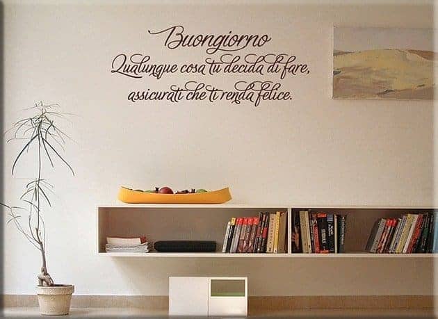 Infine non ti resta che individuare il punto più spento della tua parete, così da poterlo arricchire con i tuoi adesivi murali frase buongiorno arredo.