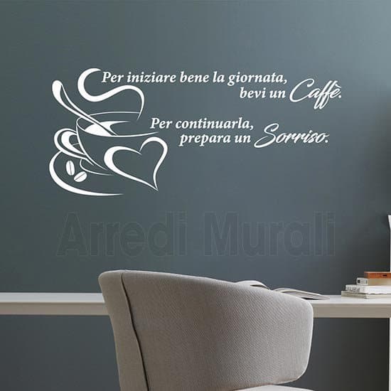Adesivi murali frase caffè per arredo pareti cucina o bar caffetteria WS1671