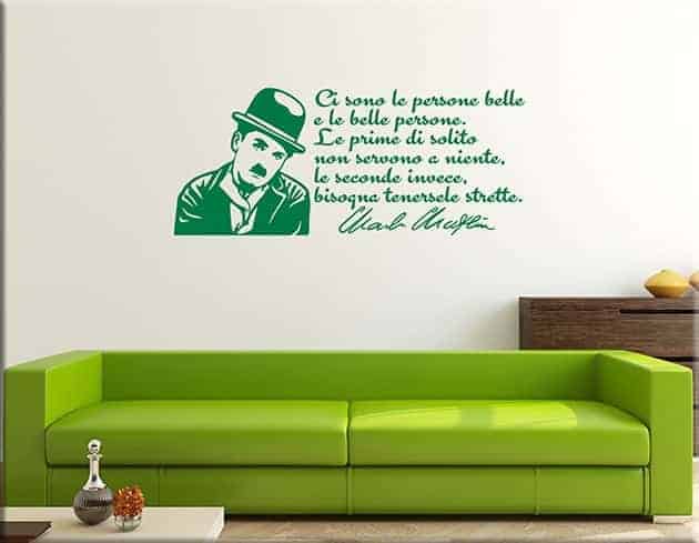 In conclusione, non ti resta che individuare il punto più anonimo della tua parete, così da abbellirlo con i tuoi adesivi murali frase Charlie Chaplin arredo.
