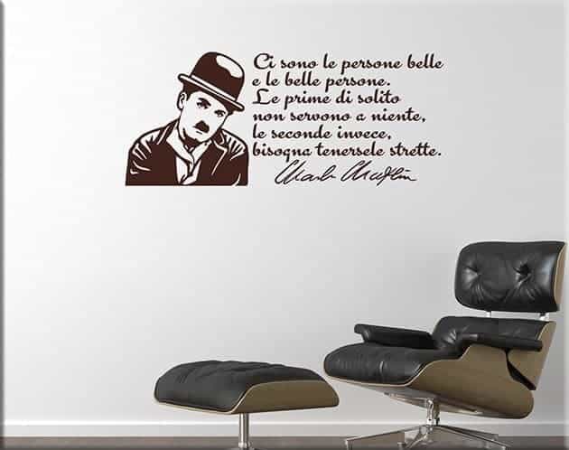 WALL STICKERS CON VOLTO DI CHARLIE CHAPLIN E UNA SUA CITAZIONE