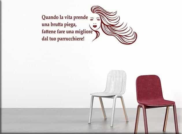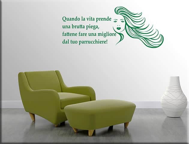 Per concludere, non ti resta che individuare il punto più spento della parete così da poterlo ravvivare con i tuoi adesivi murali frase divertente parrucchiere.