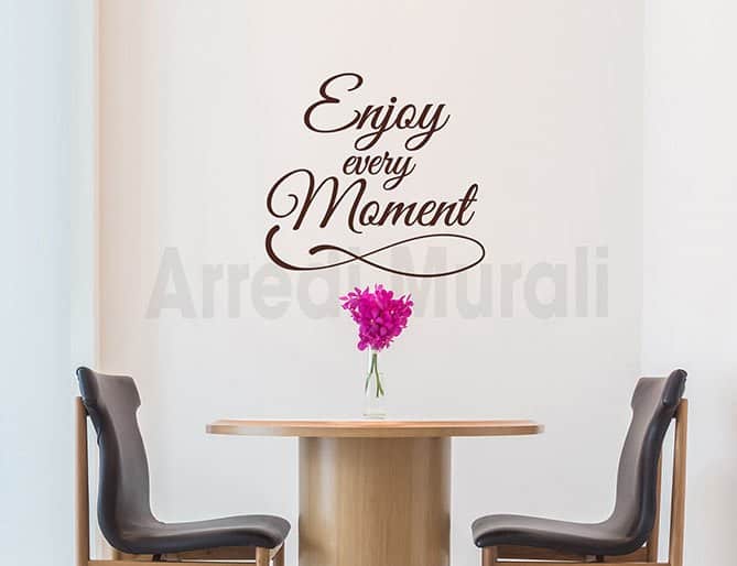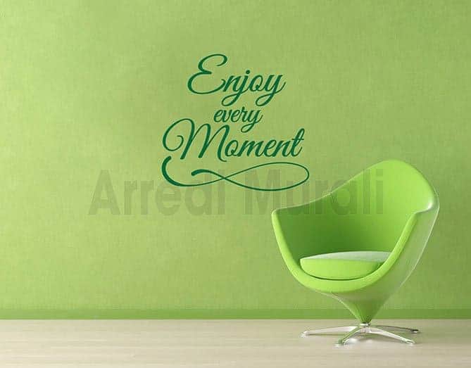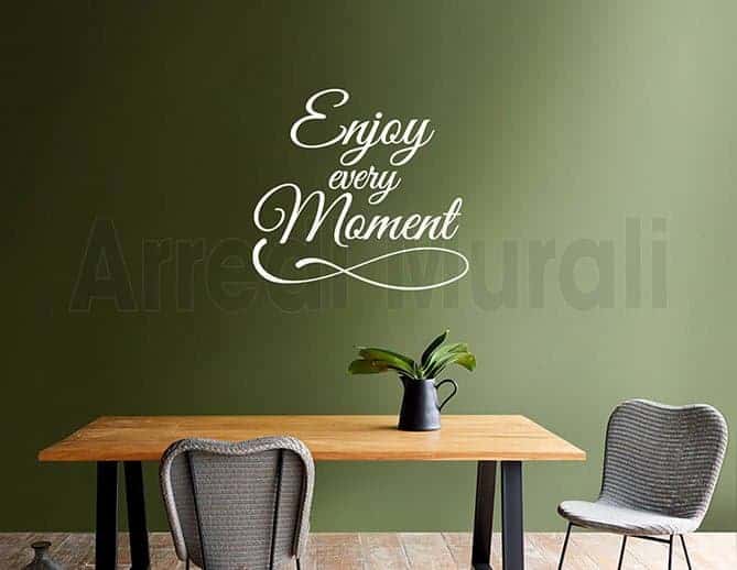 Concludendo, non ti resta che individuare la parete che più ti appare spenta così da poterla adornare con i tuoi adesivi murali frase enjoy arredo.