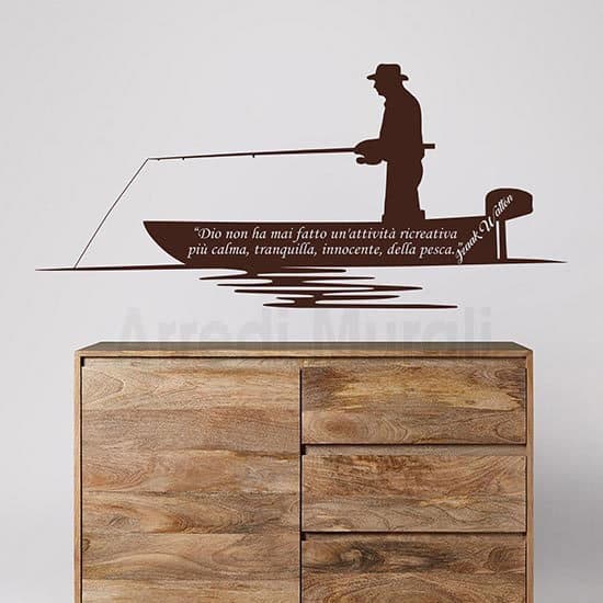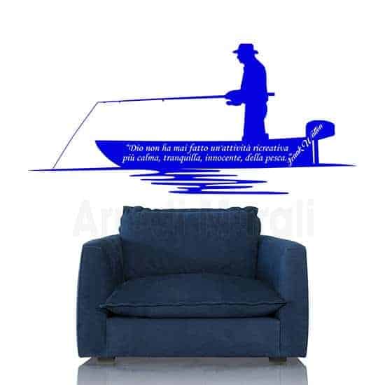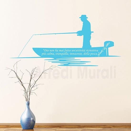 Adesivi murali frase Izaak raffigurato da un pescatore.