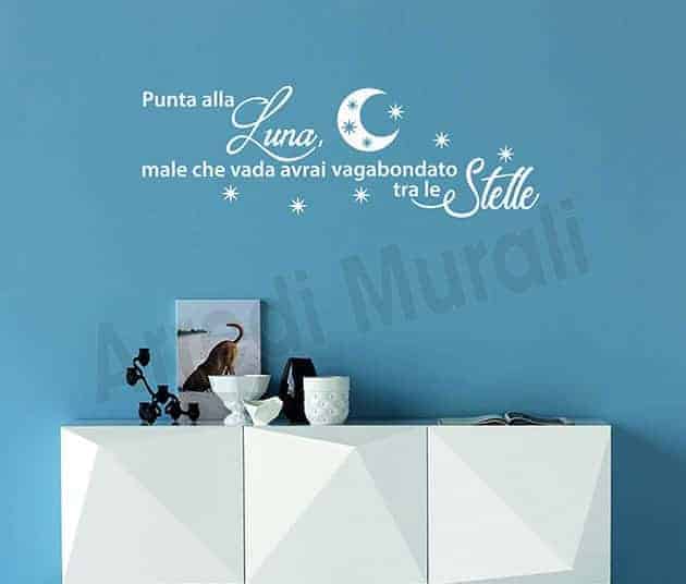 Questa frase adesiva murale luna stelle decorazioni è presente sul nostro shop disposta in verticale nella versione scritta adesiva da parete.