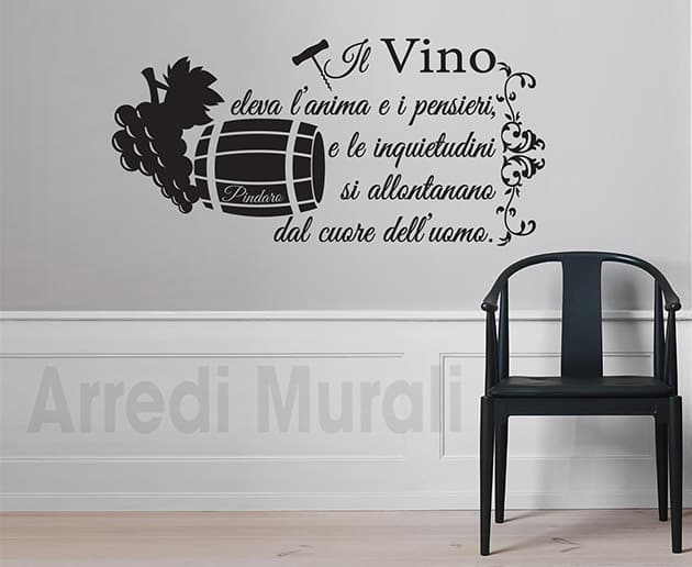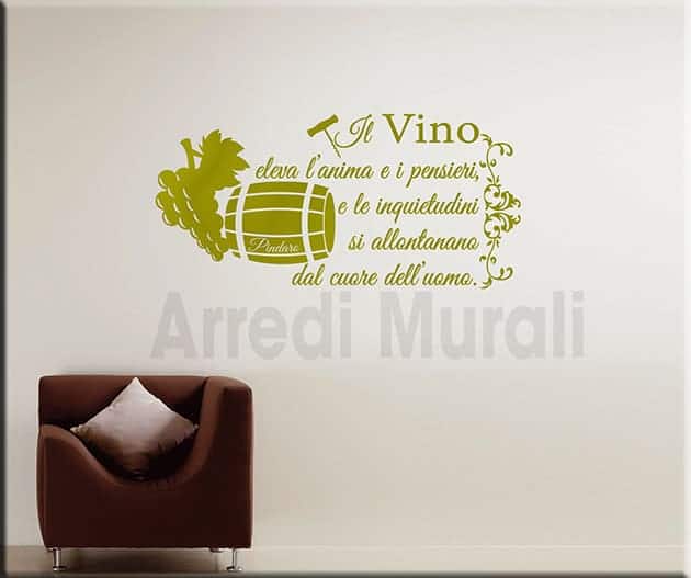 Ora non ti resta che individuare la parete che più ti appare spenta così da poterla ravvivare con i tuoi adesivi murali frase vino Pindaro decorazioni da parete.