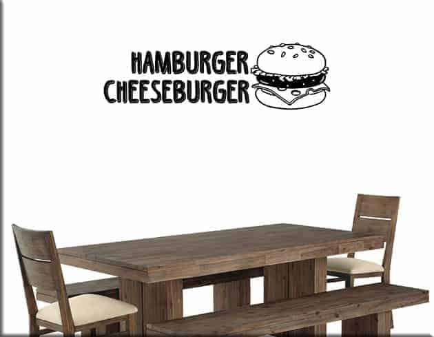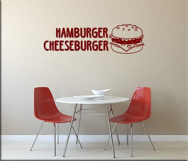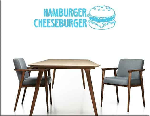 Wall stickers che compongono le parole hamburger e cheesegurger ed un bel panino