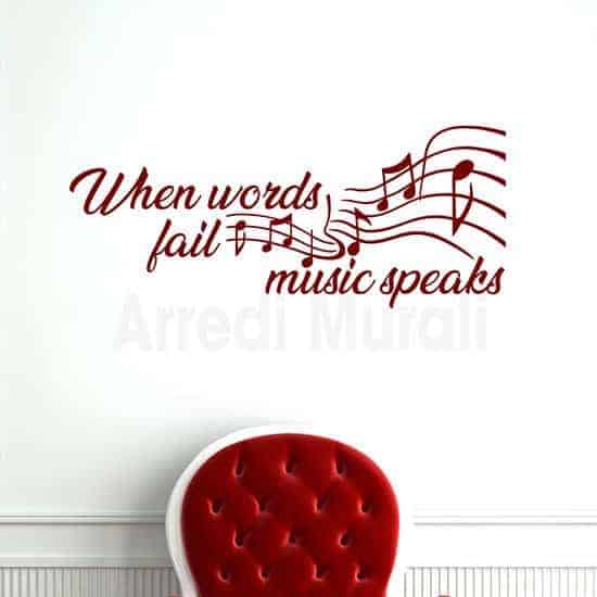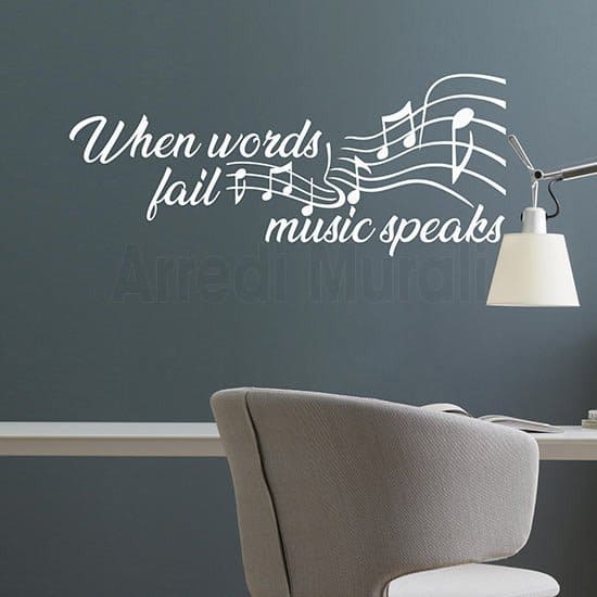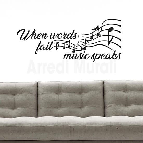 “When words fail music speaks” è la scritta adesiva riportata sullo sticker che accompagnata dal pentagramma e dalle note musicali in movimento ti danno la sensazione di “sentirla la musica”