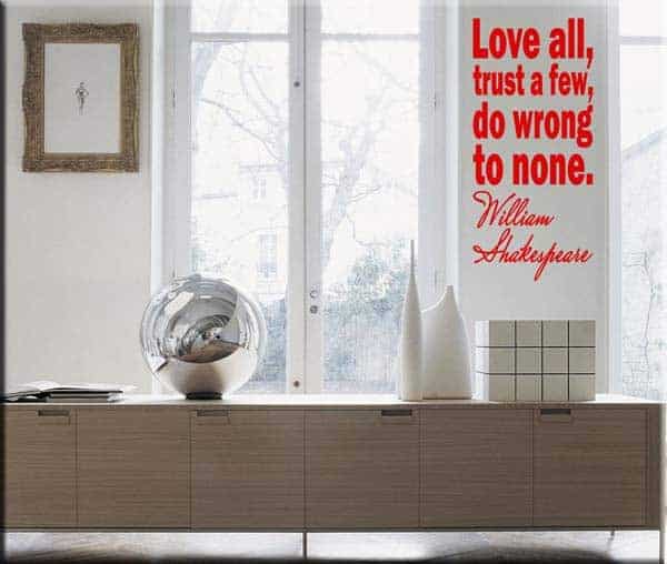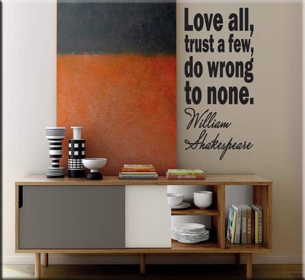 Ora non ti resta che individuare il punto della tua parete che più ti appare spento per poterlo così abbellire con il tuo adesivo murale citazione William Shakespeare.