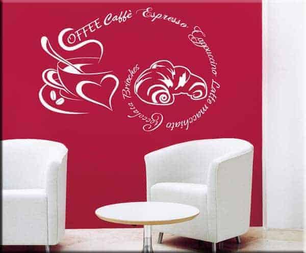 Decorazione adesiva coffee caffè bar sono adesivi da parete che possono essere applicati sul muro di un bar caffetteria o nella vostra cucina.