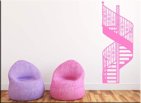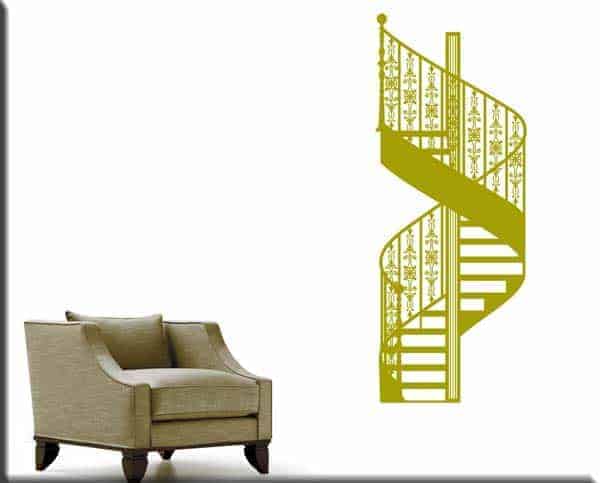 Decorazione adesiva murale scala chiocciola composta da particolari adesivi murali che arricchiscono l’ambiente prescelto con stile.