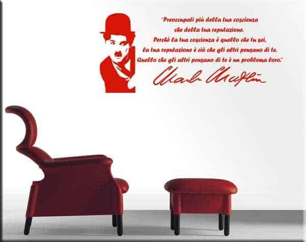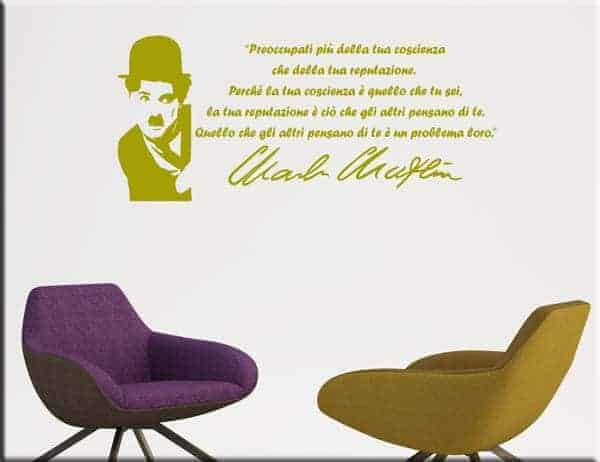 ADESIVI MURALI CON VOLTO DI CHARLIE CHAPLIN E UNA SUA CITAZIONE