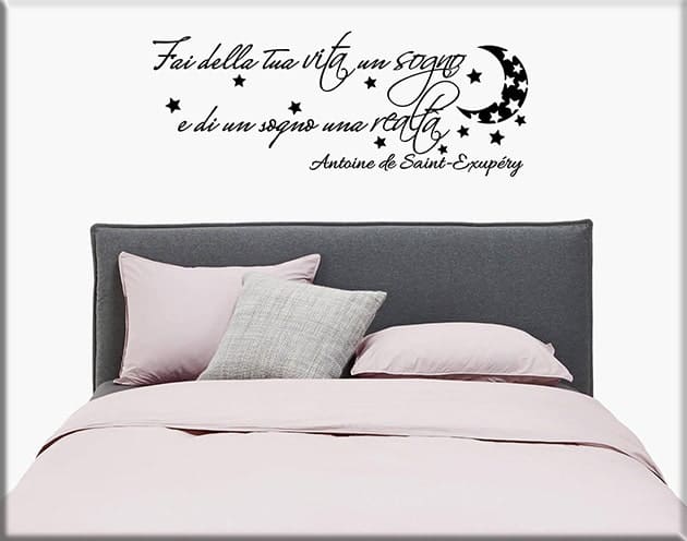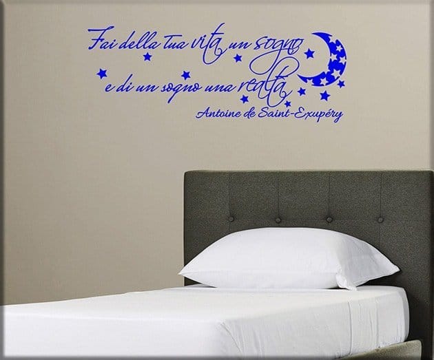 Per concludere, non ti resta che individuare la parete che più ti appare spenta così da poterla abbellire con le tue decorazioni adesive murali frase letto.