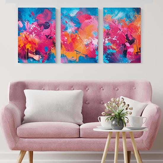 Una composizione di 3 stampe su tela con colori vivaci o un design audace, perfetta per arredare con originalità il tuo soggiorno oppure l’ufficio.