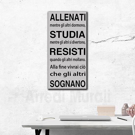 Inoltre, questa frase su quadro moderno può anche essere un regalo da fare ad un ragazzo o una ragazza che sta perseguendo un obbiettivo.