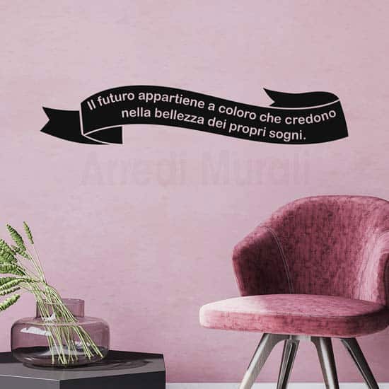 Infine ricorda che questi adesivi murali personalizzati hanno il testo intagliato, quindi il colore che sceglierai sarà quello del nastro che racchiude la frase.