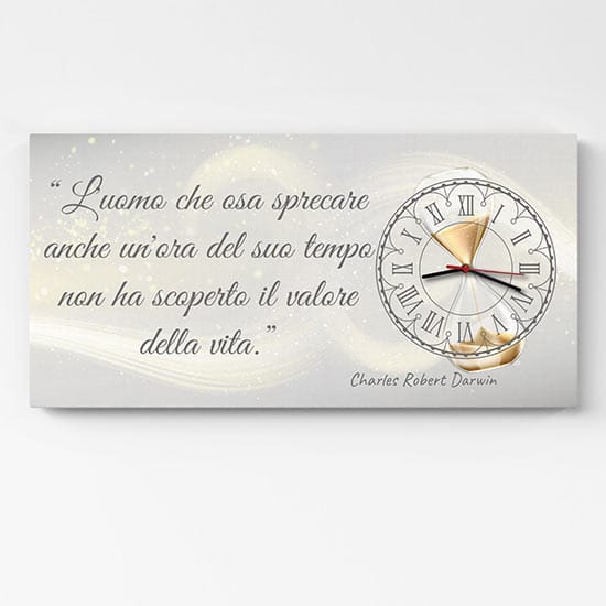 Questo particolare segnatempo è realizzato con una stampa su tela che riporta la citazione di Charles Robert Darwin: