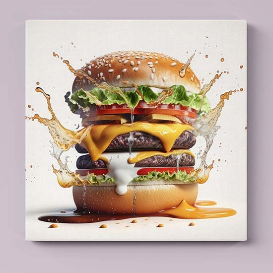 I quadri su tela raffiguranti cheeseburger, patatine fritte e pizza sono un’ottima scelta per chi desidera unire passione per il cibo e amore per l’arte.