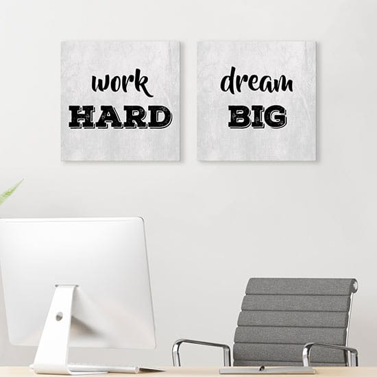 Per concludere, riceverai in pochissimi giorni questi esclusivi quadri con scritte su tela pronti per essere appesi nel tuo ufficio arredandolo con stile moderno.