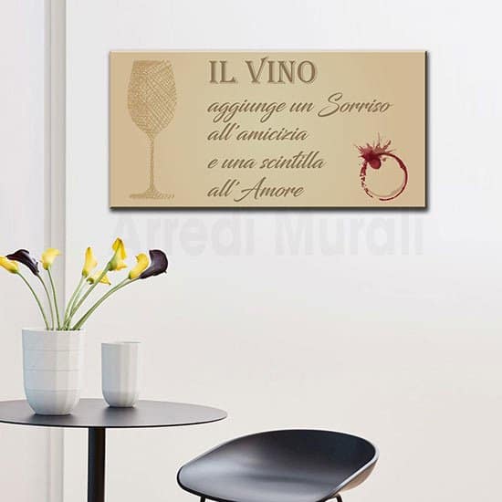 Quadro cucina con frase sul vino, dai colori delicati e leggeri perfetto in un arredamento moderno o classico che non sia lucido.