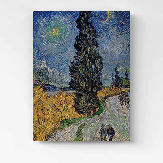 Quadro di Van Gogh la strada con cipressi, una riproduzione stampata su tela e pronta da appendere sulla tua parete.