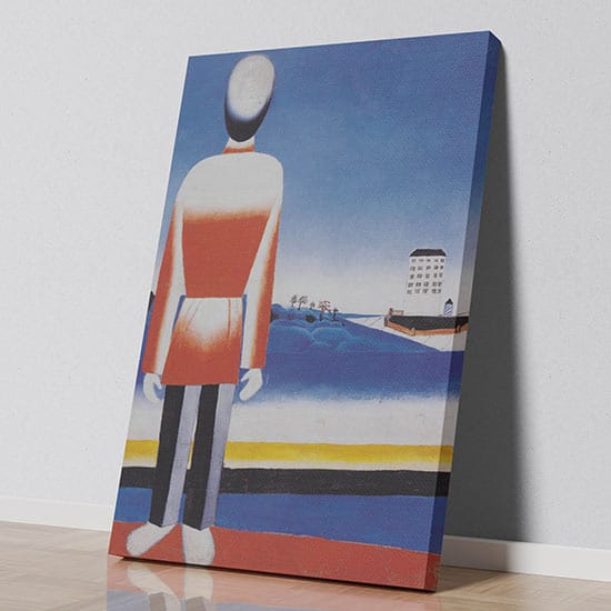 Quadro L’uomo in un paesaggio suprematista di Malevich stampato su tela e pronto da appendere.