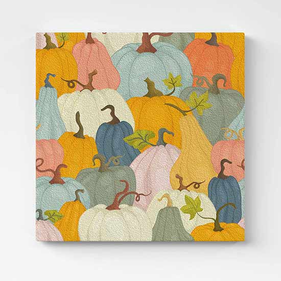 Quadro moderno su tela per cucina, dipinto con zucche da appendere per arredare con stile moderno.