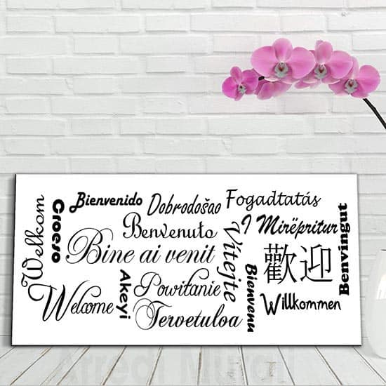 2 recensioni per Quadro con scritte benvenuto in varie lingue del mondo Q652