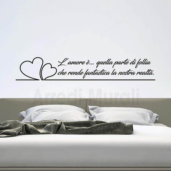 Come in questo caso, scegliendo questo stickers murale per camera da letto, da applicare sulla testata matrimoniale e scrivendo la tua frase preferita, donerai alla tua stanza un effetto unico.