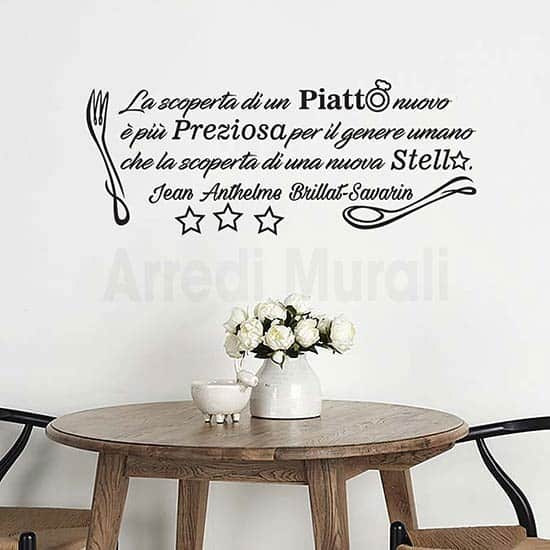 Si tratta di originali adesivi murali che compongono la citazione di Jean Anthelme Brillat-Savarin: