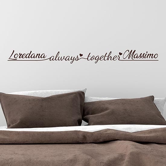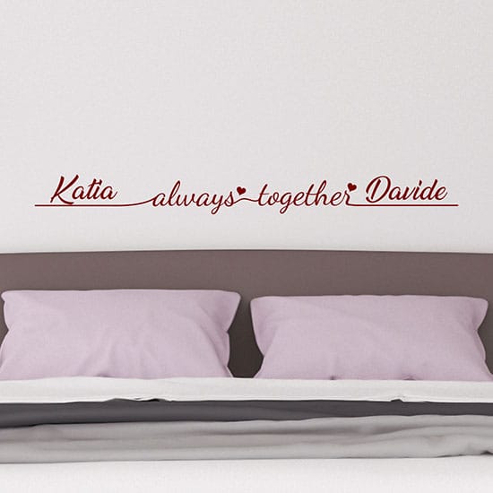 Esclusivi adesivi per camera da letto con personalizzazione, infatti potrai applicarli sulla tua parete con i nomi che ci indicherai.