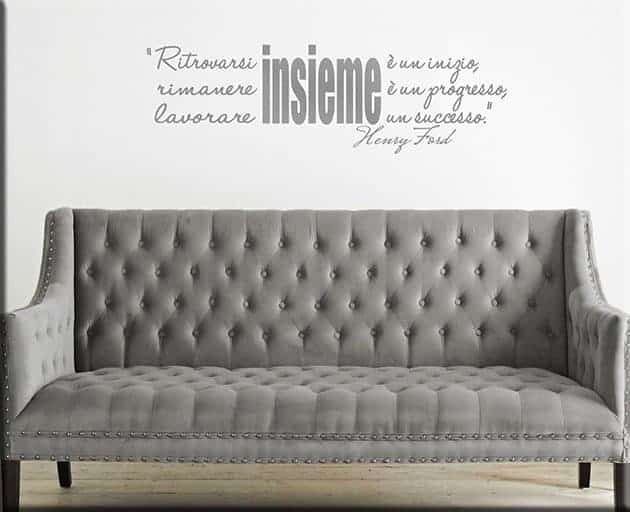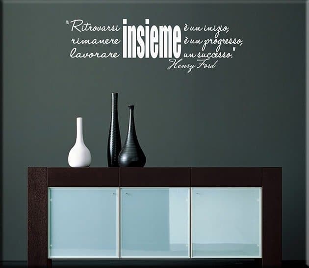 Per concludere, non ti resta che individuare la parete che più ti appare anonima, per poterla abbellire con i tuoi wall stickers citazione Henry Ford.