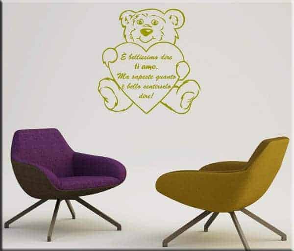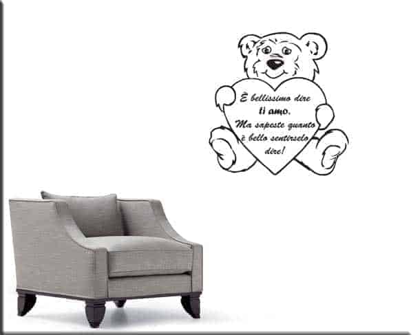 In conclusione, non ti resta che individuare l’angolo della parete che più ti appare spento, per poterlo abbellire con i tuoi wall stickers orsacchiotto frase love.